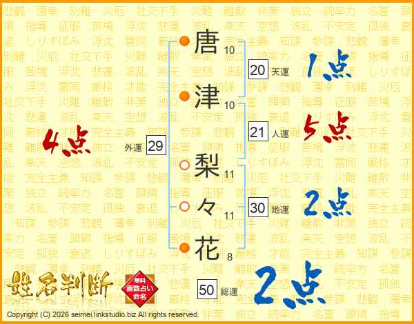唐津梨々花さんの総運は50画の2点!