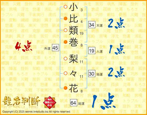 小(3画)比(4画)類(19画)巻(8画) 梨(11画)々(11画)花(8画)