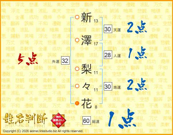 新澤梨々花さんの外運は32画の5点!