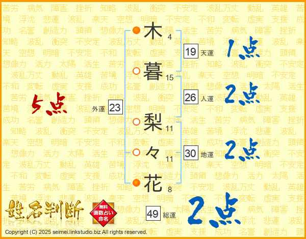 木暮梨々花さんの地運は30画の2点!