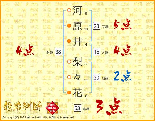 河原井梨々花さんの外運は38画の4点