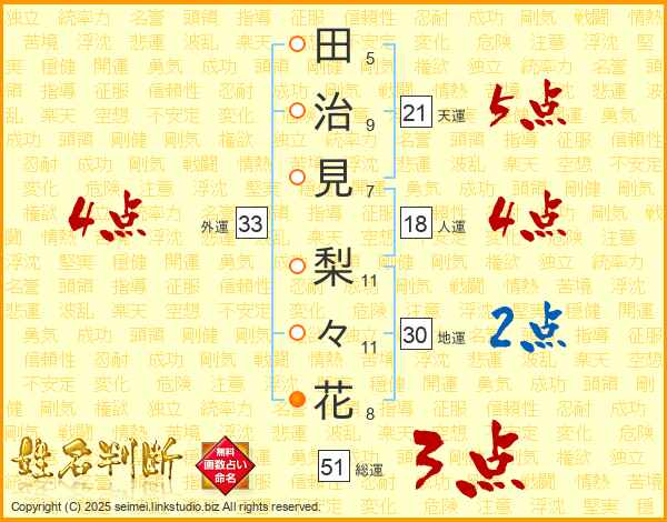 田治見梨々花さんの総運は51画の3点