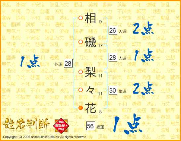 相磯梨々花さんの天運は26画の2点!