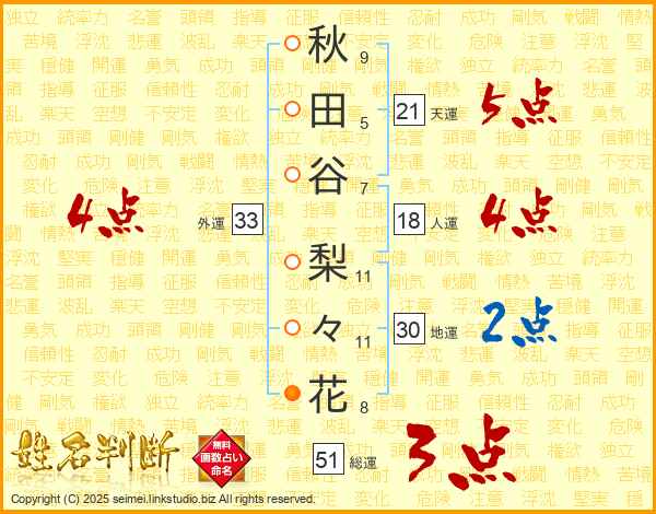 秋田谷梨々花さんの総運は51画の3点!