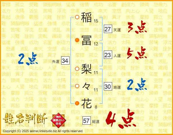 稲冨梨々花さんの総運は57画の4点