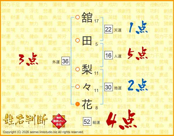 舘田梨々花さんの総運は52画の4点!