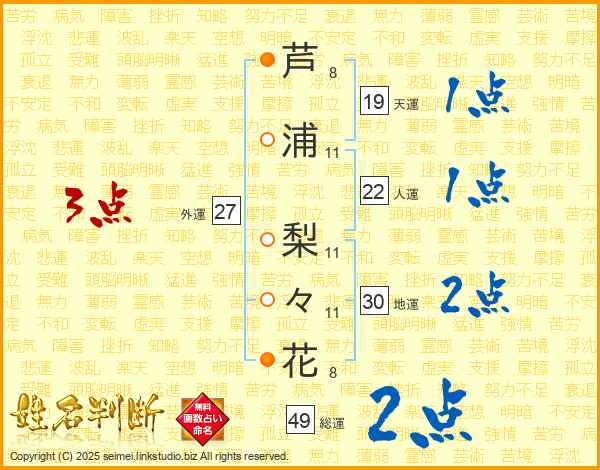 芦(8画)浦(11画) 梨(11画)々(11画)花(8画)