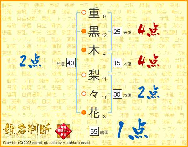 重黒木梨々花さんの天運は25画の4点!