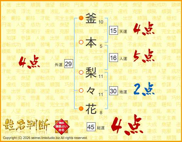 釜本梨々花さんの総運は45画の4点!