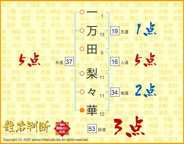 一万田梨々華さんの総運は53画の3点!