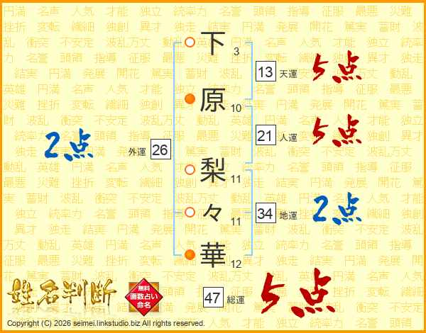 下原梨々華さんの総運は47画の5点!