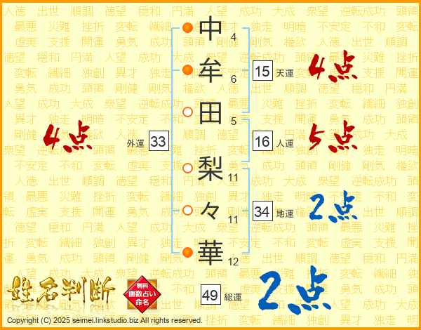 中牟田梨々華さんの外運は33画の4点!