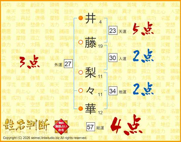井(4画)藤(19画) 梨(11画)々(11画)華(12画)