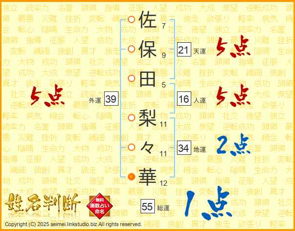 佐保田梨々華さんの外運は39画の5点!