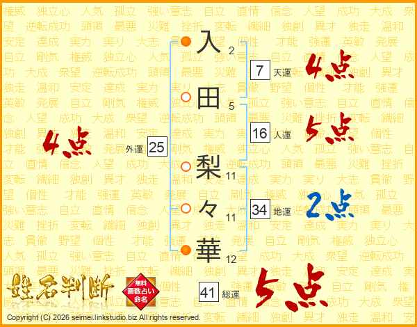 入田梨々華さんの総運は41画の5点!