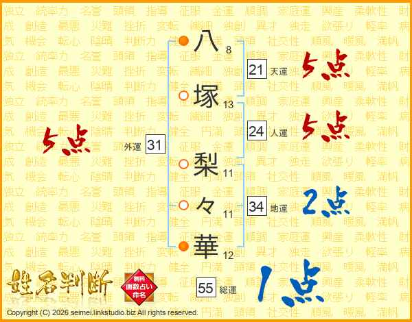 八塚梨々華さんの天運は21画の5点!