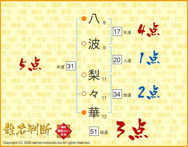八波梨々華さんの総運は51画の3点!