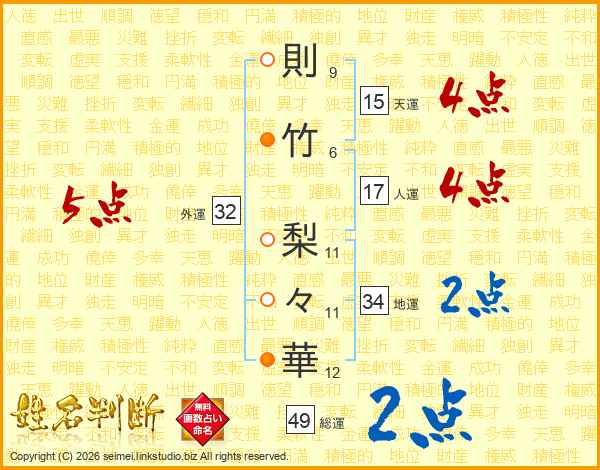 則竹梨々華さんの総運は49画の2点!