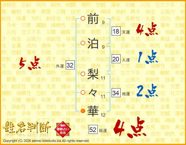 前泊梨々華さんの総運は52画の4点!