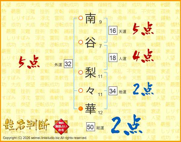 南谷梨々華さんの外運は32画の5点!
