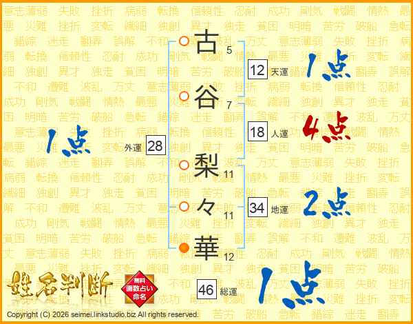古谷梨々華さんの総運は46画の1点!