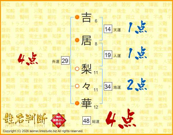 吉居梨々華さんの総運は48画の4点!