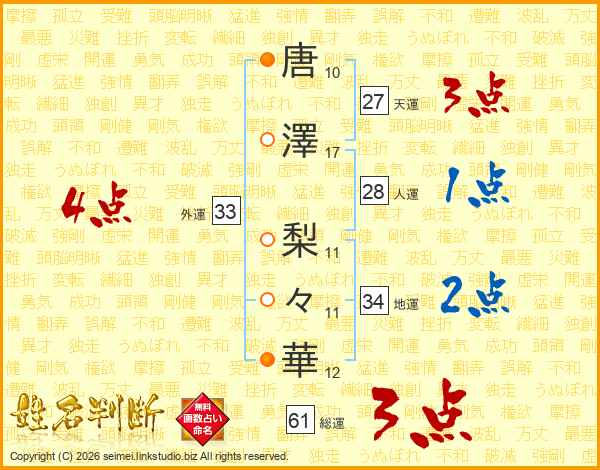 唐澤梨々華さんの外運は33画の4点!