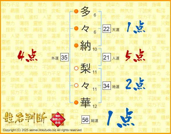 多々納梨々華さんの天運は22画の1点!