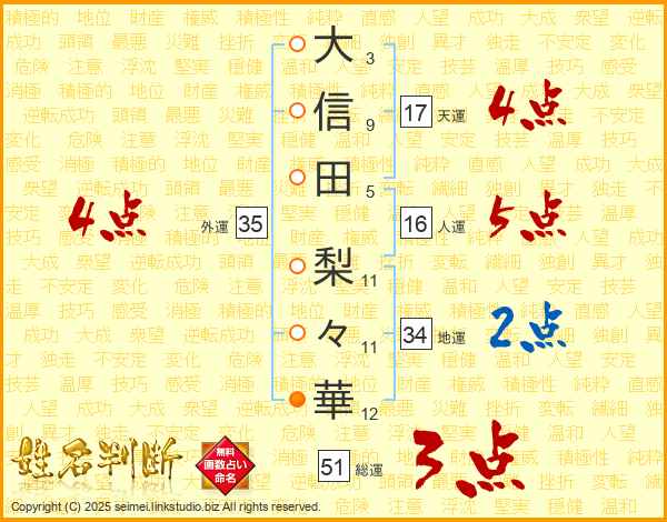 大信田梨々華さんの外運は35画の4点!