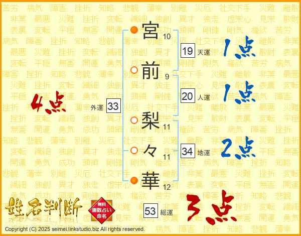 宮前梨々華さんの総運は53画の3点!