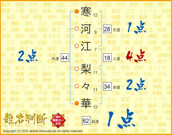 寒河江梨々華さんの外運は44画の2点!
