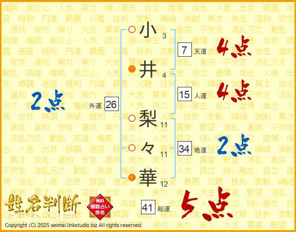 小井梨々華さんの総運は41画の5点!