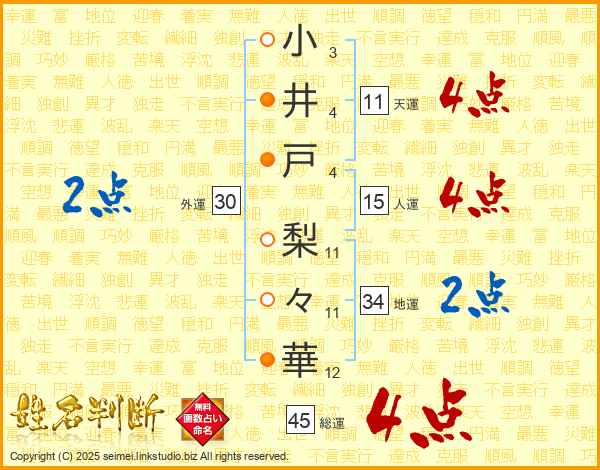 小(3画)井(4画)戸(4画) 梨(11画)々(11画)華(12画)