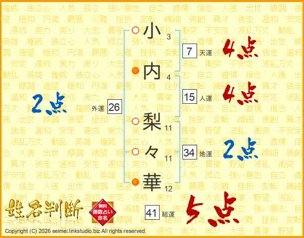 小内梨々華さんの外運は26画の2点!