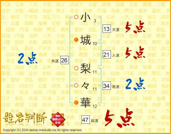 小(3画)城(10画) 梨(11画)々(11画)華(12画)