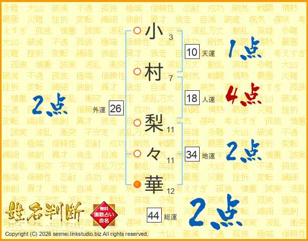 小村梨々華さんの総運は44画の2点!