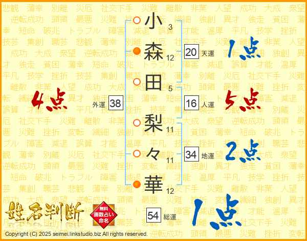 小(3画)森(12画)田(5画) 梨(11画)々(11画)華(12画)