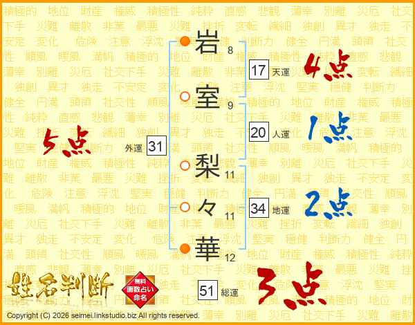 岩室梨々華さんの総運は51画の3点!