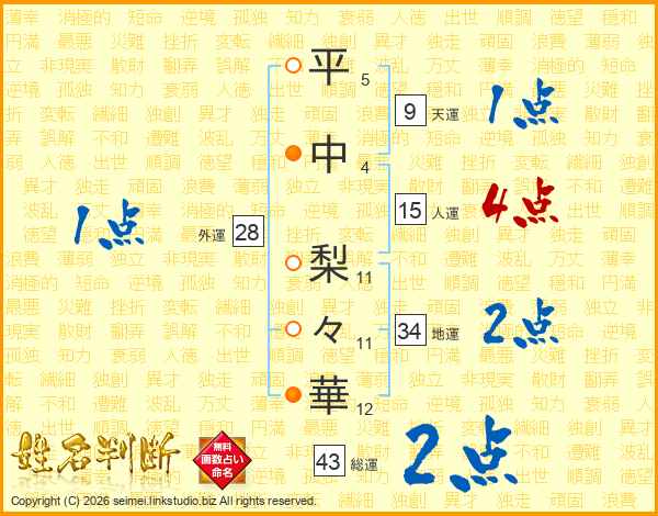 平中梨々華さんの総運は43画の2点!