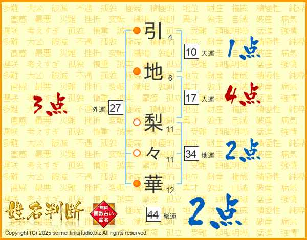 引地梨々華さんの総運は44画の2点!