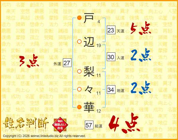 戸(4画)辺(19画) 梨(11画)々(11画)華(12画)