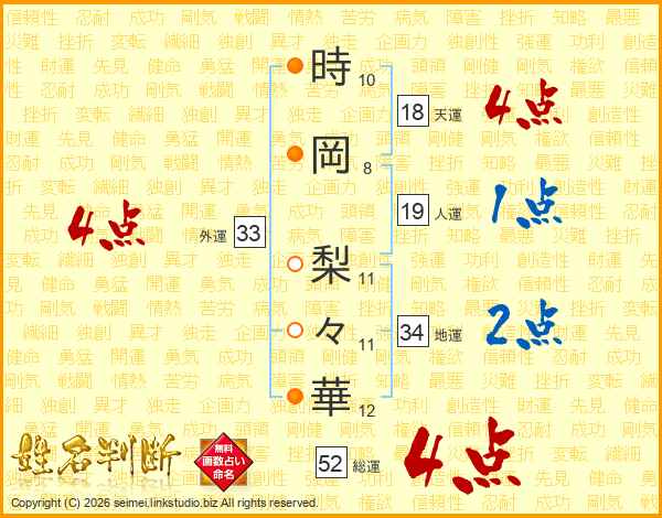 時岡梨々華さんの総運は52画の4点!