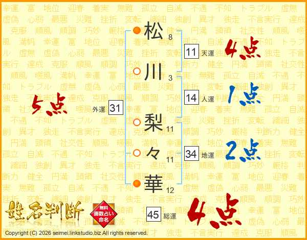 松川梨々華さんの総運は45画の4点!