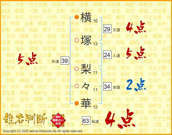横塚梨々華さんの外運は39画の5点!