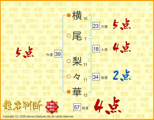 横尾梨々華さんの外運は39画の5点!