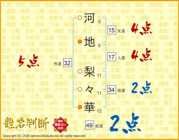 河地梨々華さんの外運は32画の5点!