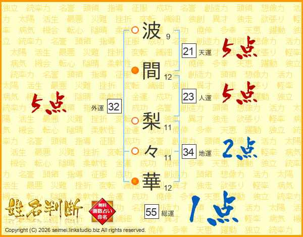 波間梨々華さんの外運は32画の5点!