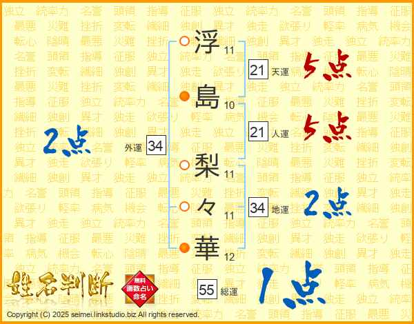 浮島梨々華さんの天運は21画の5点!
