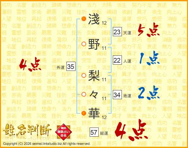 淺野梨々華さんの外運は35画の4点!