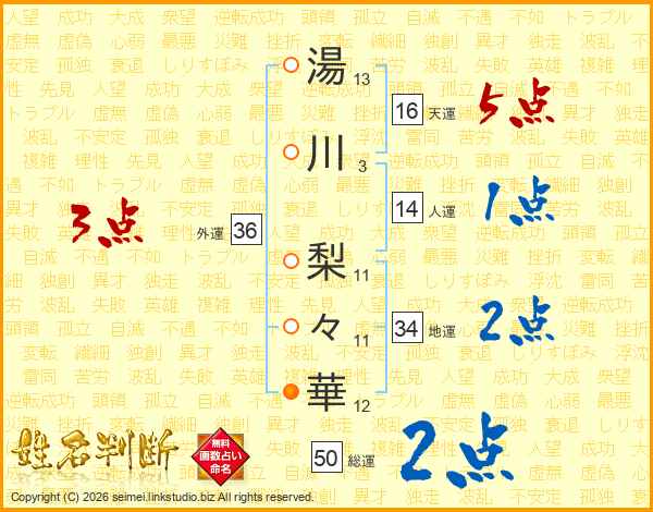 湯川梨々華さんの外運は36画の3点!